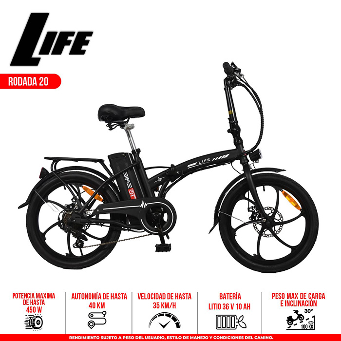 ¡Compra la nueva Bicicleta Eléctrica Plegable LIFE! Diseñada para ofrecerte comodidad, potencia y seguridad en cada trayecto. Ideal para moverte por la ciudad de manera eficiente y ecológica.