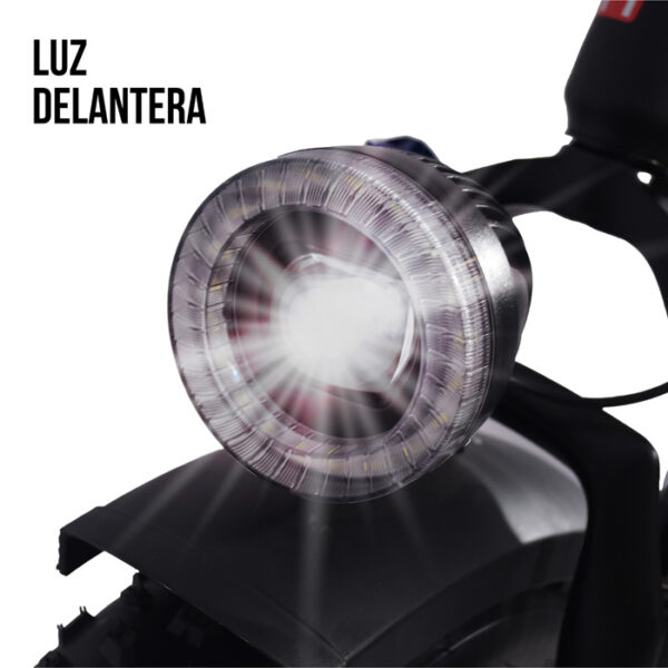 - Iluminación: Luces LED delanteras y traseras que se activan al pedalear (sistema eléctrico habilitado)