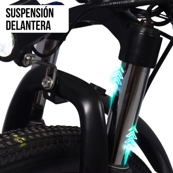 La suspensión delantera ofrece una conducción suave, absorbiendo los impactos del terreno irregular.