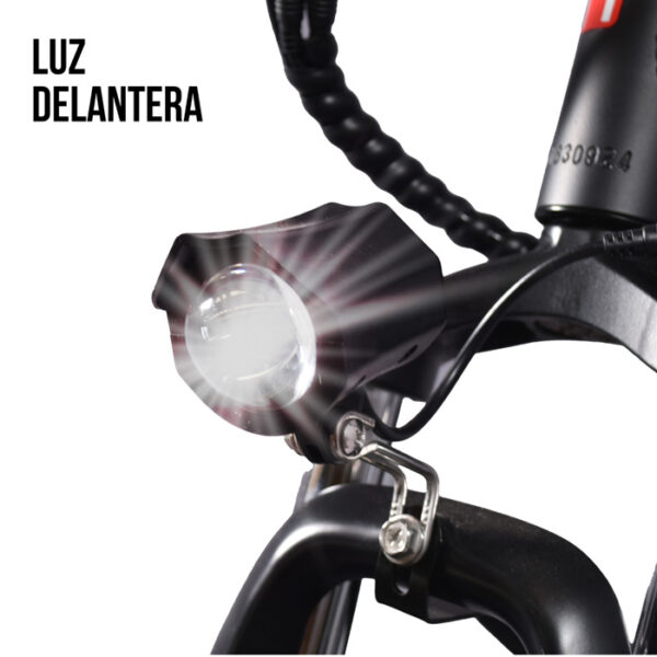 Incorpora una luz LED delantera y un claxon para mayor seguridad en tus rutas nocturnas o en áreas de baja visibilidad.