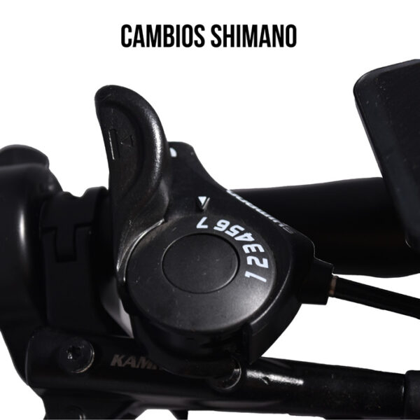 Con desviador y cambios Shimano de 6 velocidades, podrás ajustar la resistencia de manera precisa para cada tipo de terreno.