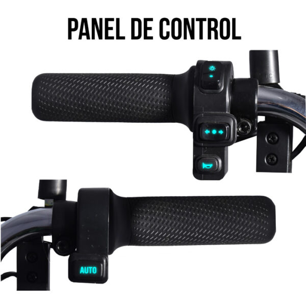 Equipada con suspensión delantera y trasera, frenos de tambor y luces LED delanteras y traseras, esta bicimoto ofrece una conducción suave y segura. Además, cuenta con canastilla delantera, parador lateral y tipo moto, encendido con llave, control remoto con alarma antirrobo y tablero digital. Puede subir pendientes de hasta 15°, lo que la hace ideal para entornos urbanos planos o con ligera inclinación.