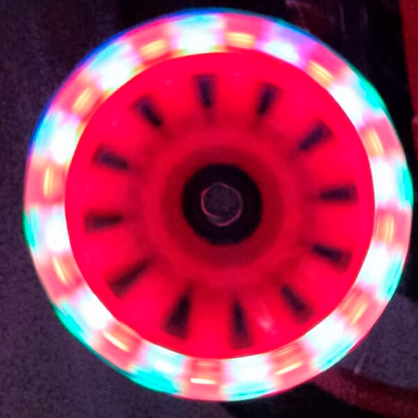 - Llantas Desmontables con Luces de Colores: Las llantas no solo son desmontables para facilitar el transporte y almacenamiento, sino que también vienen con luces de colores que hacen cada paseo aún más divertido y visible en condiciones de poca luz.