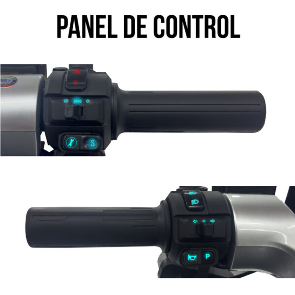 - Control de alarma: Con potente alarma, prende la moto, la apaga y es capaz de bloquear las llantas.